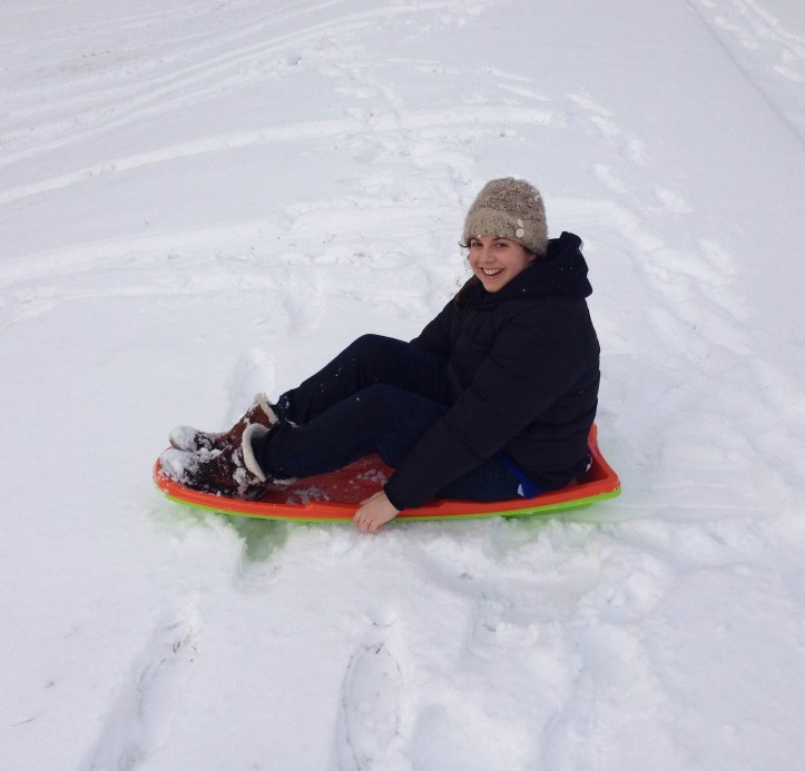 Nicole sledding